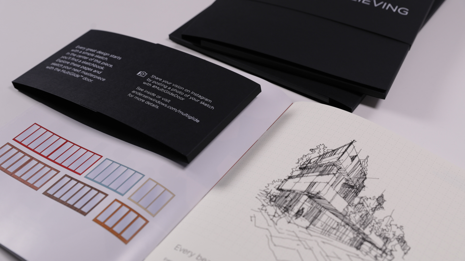 This mailer was designed to appeal to the high-end architect on the West Coast. The wrapping pages are glossy paper with minimalist content evocative of a museum catalog. The center of the book is for sketching design ideas using the MultiGlide Door. Each page of the sketchbook contains technical information about the door. The architect is encouraged to share via social media. Winner of three silver pins at The Show 2017.