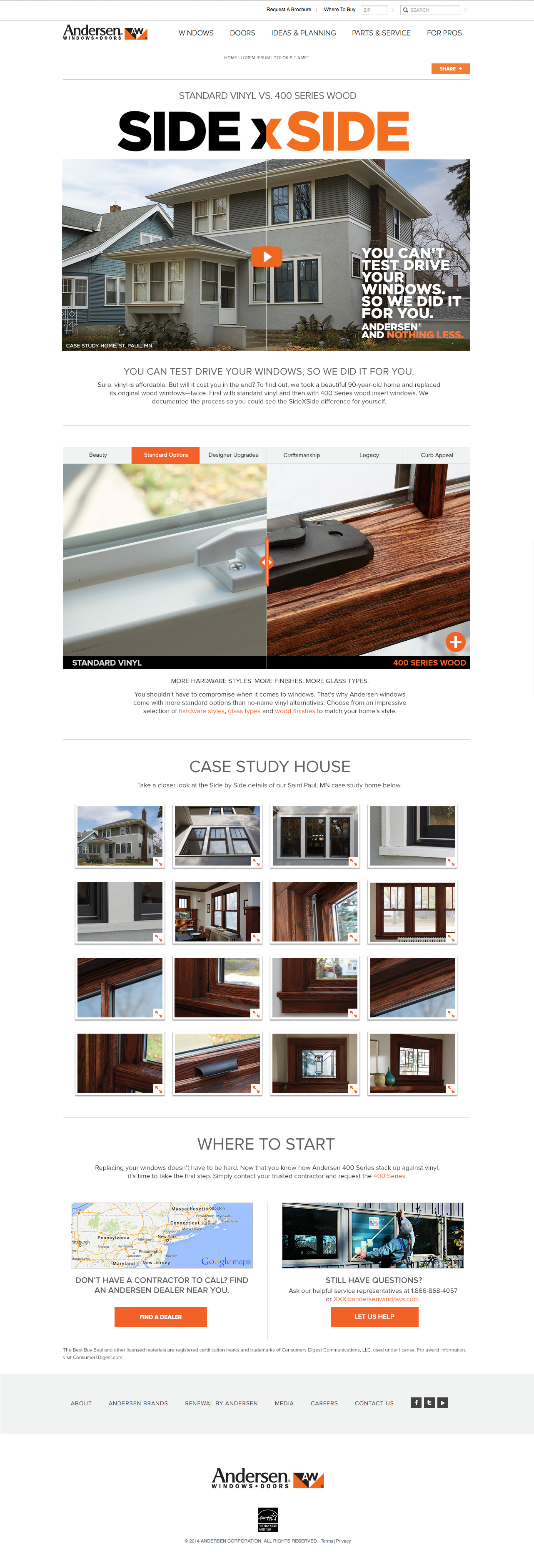 Design of a website sharing the results of a side-by-side comparison of low-cost vinyl versus the beauty of real wood.