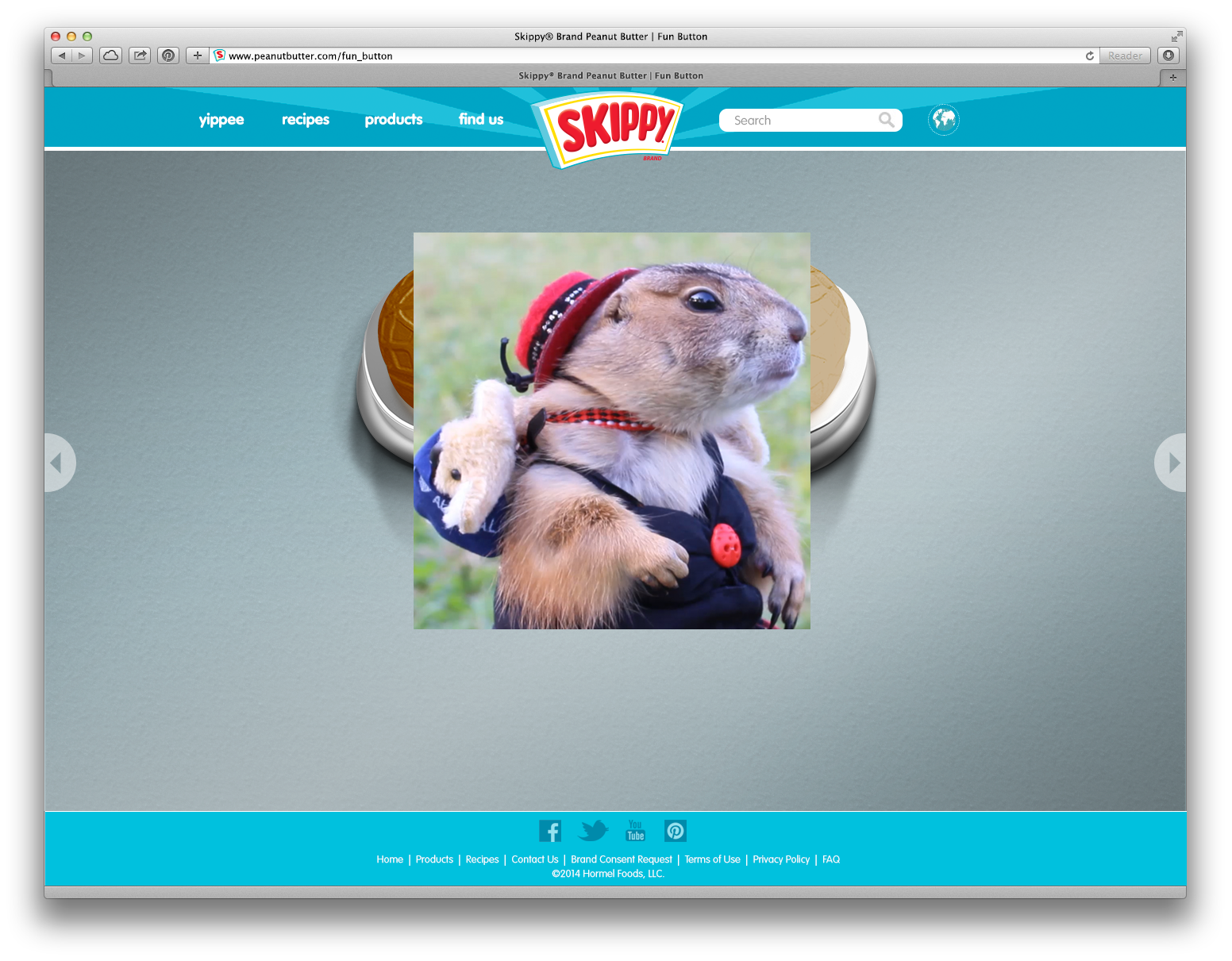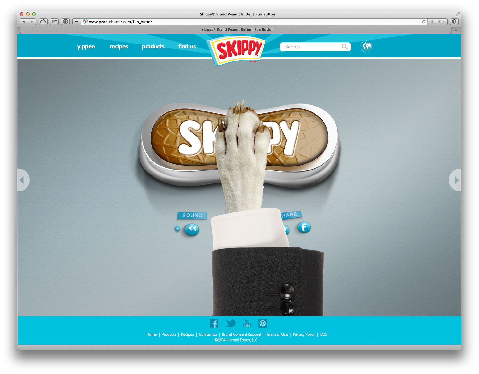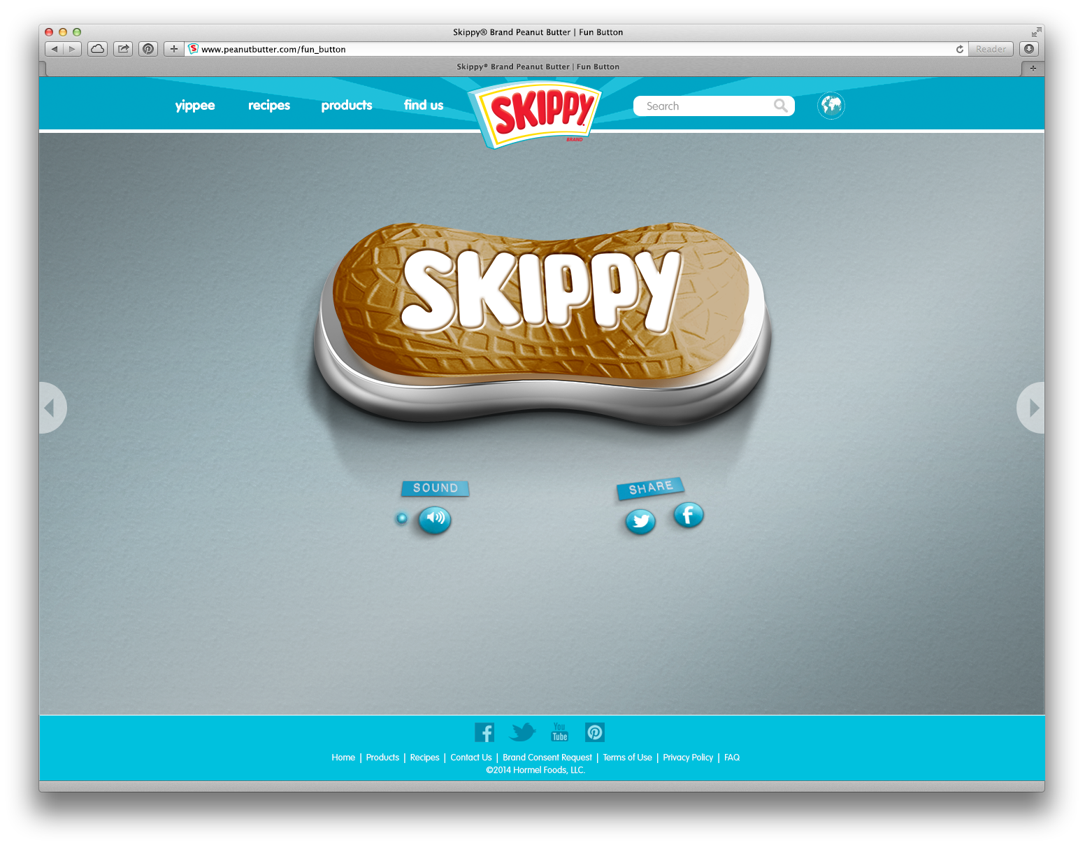 Official Honoree, 19th Annual Webby Awards Responsive design for the Skippy Fun Button, an irresistibly pushable button with a fun surprise GIF as a reward.
