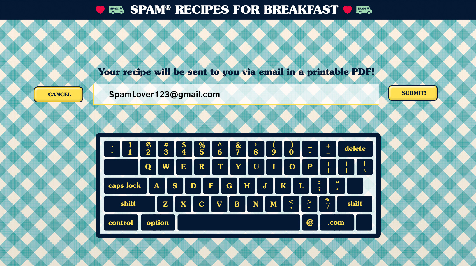 Interactive Recipe Touchscreen design for the new SPAM Museum in Austen, MN